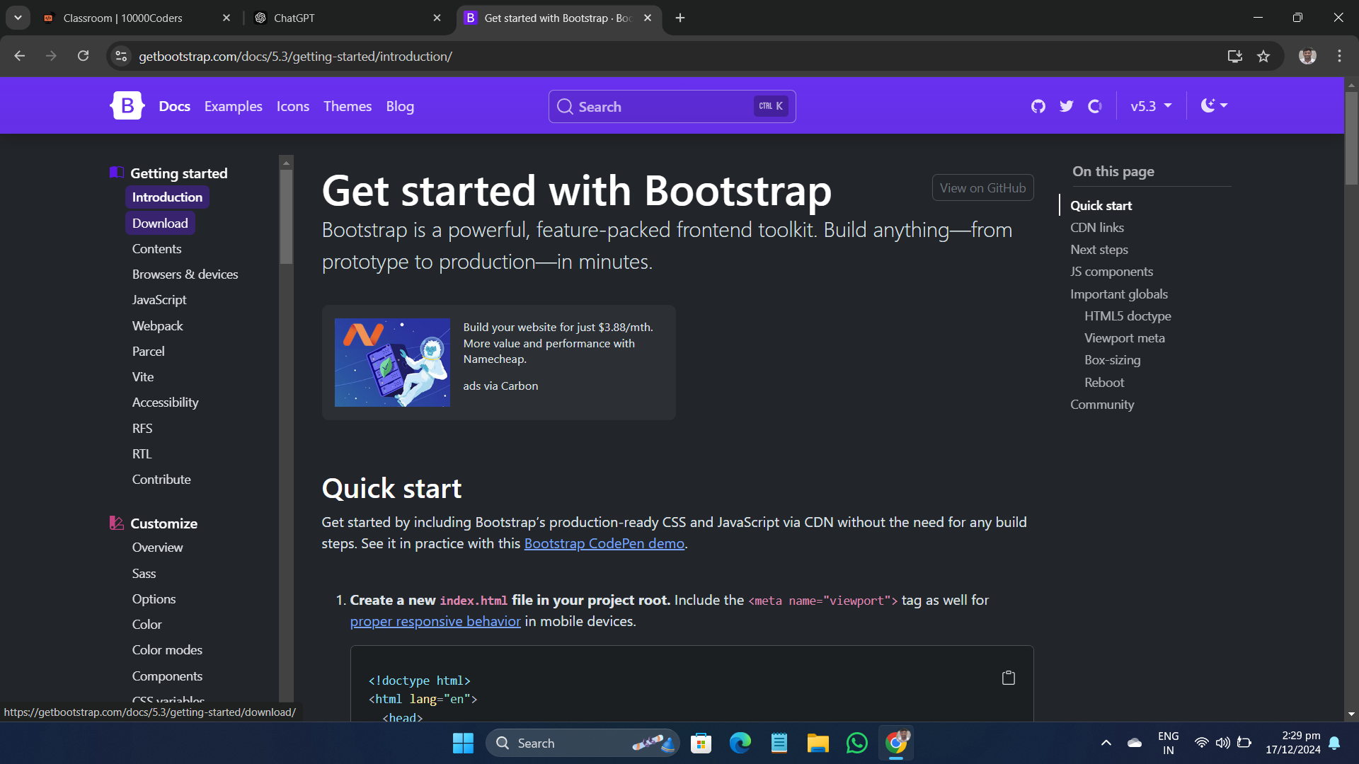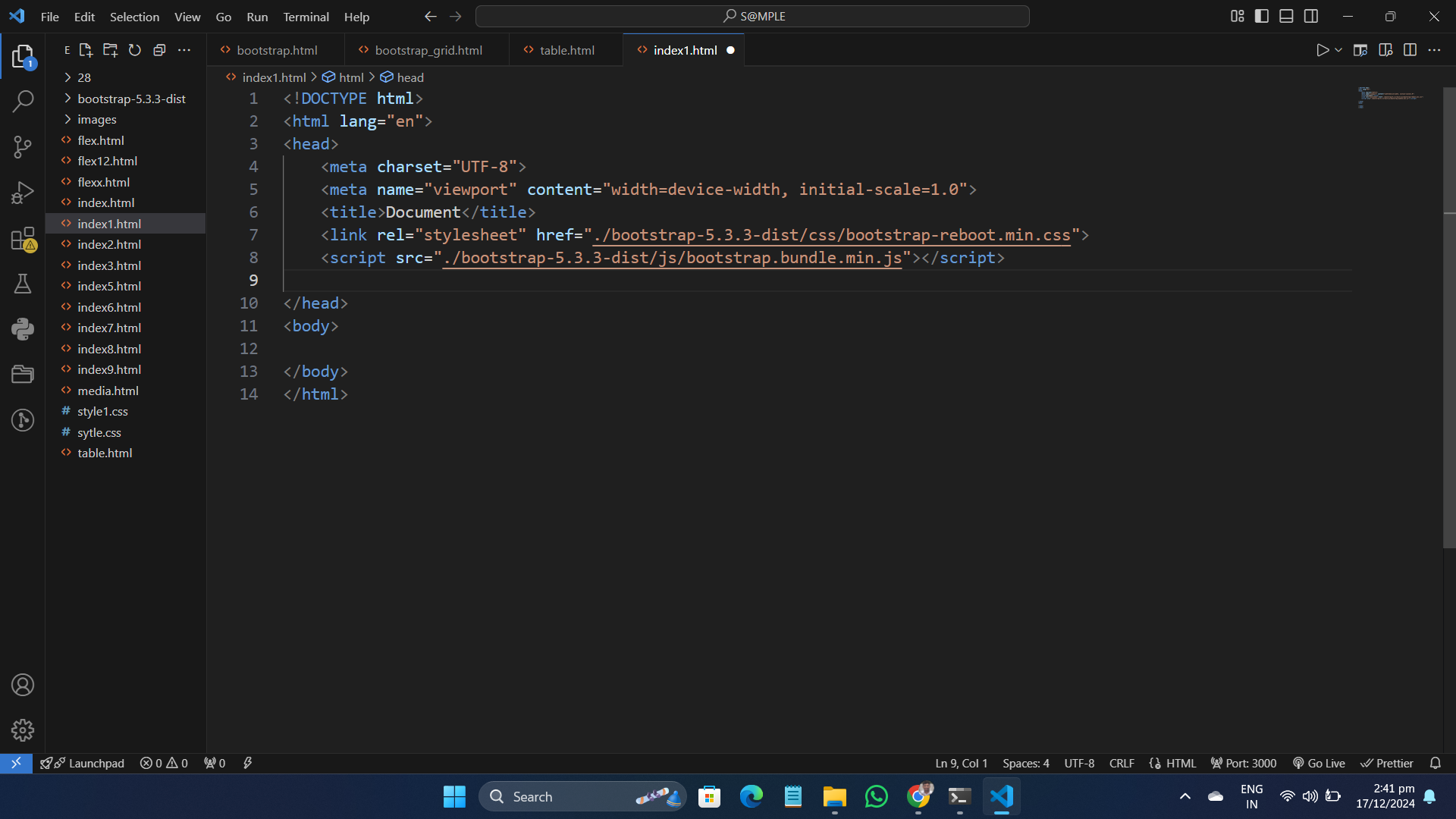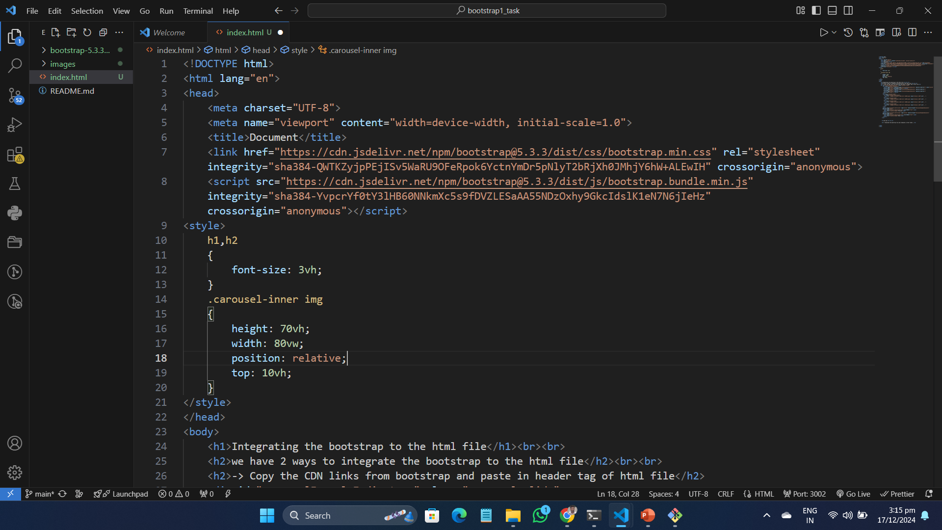 -> Copy the CDN links from bootstrap and paste in header tag of html file